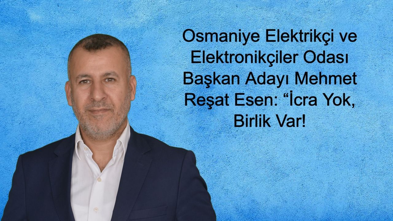 Osmaniye Elektrikçi ve Elektronikçiler Esnaf ve Sanatkârlar Odası’nda seçim süreci yaklaşırken ortaya atılan bazı iddialar, üyeler arasında tartışmalara neden oldu. Özellikle aidat borcu bulunan üyelerin “icraya verileceği” yönündeki söylemler dikkat çekti. Oda başkan adayı Mehmet Reşat Esen, konuya ilişkin kapsamlı bir açıklama yaparak bu iddiaları net bir dille yalanladı. Esen, üyeleri tedirgin eden hiçbir uygulamanın kendi yönetim anlayışlarında yer almadığını belirtti.