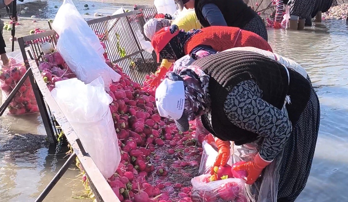 Yıkama işlemi, işin en zahmetli aşamalarından biri olarak öne çıkıyor. Kadınlar, kış aylarında soğuk hava ve buz gibi suya rağmen saatlerce suyun içinde çalışıyor. Yıkanan turplar daha sonra torbalanarak sevkiyata hazır hale getiriliyor. Gün boyunca devam eden bu süreç, ciddi bir fiziksel dayanıklılık gerektiriyor.